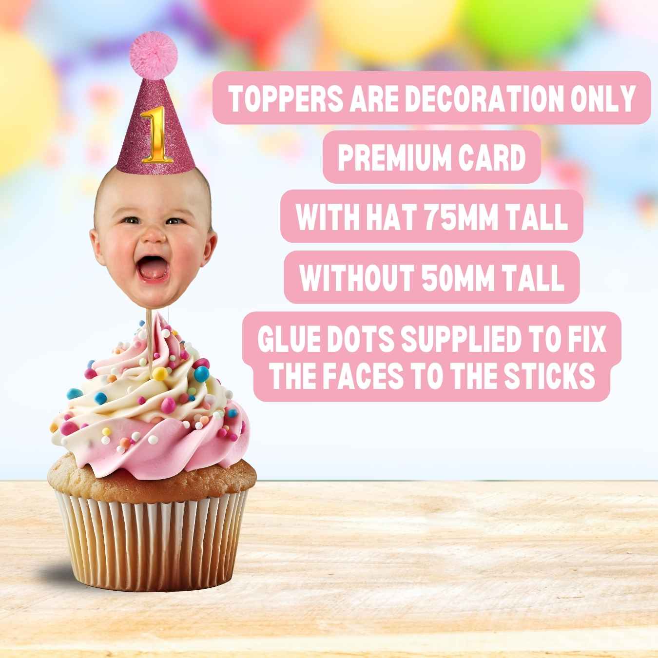 - Party Hat Options: Customise your toppers with adorable party hats or go hat-free